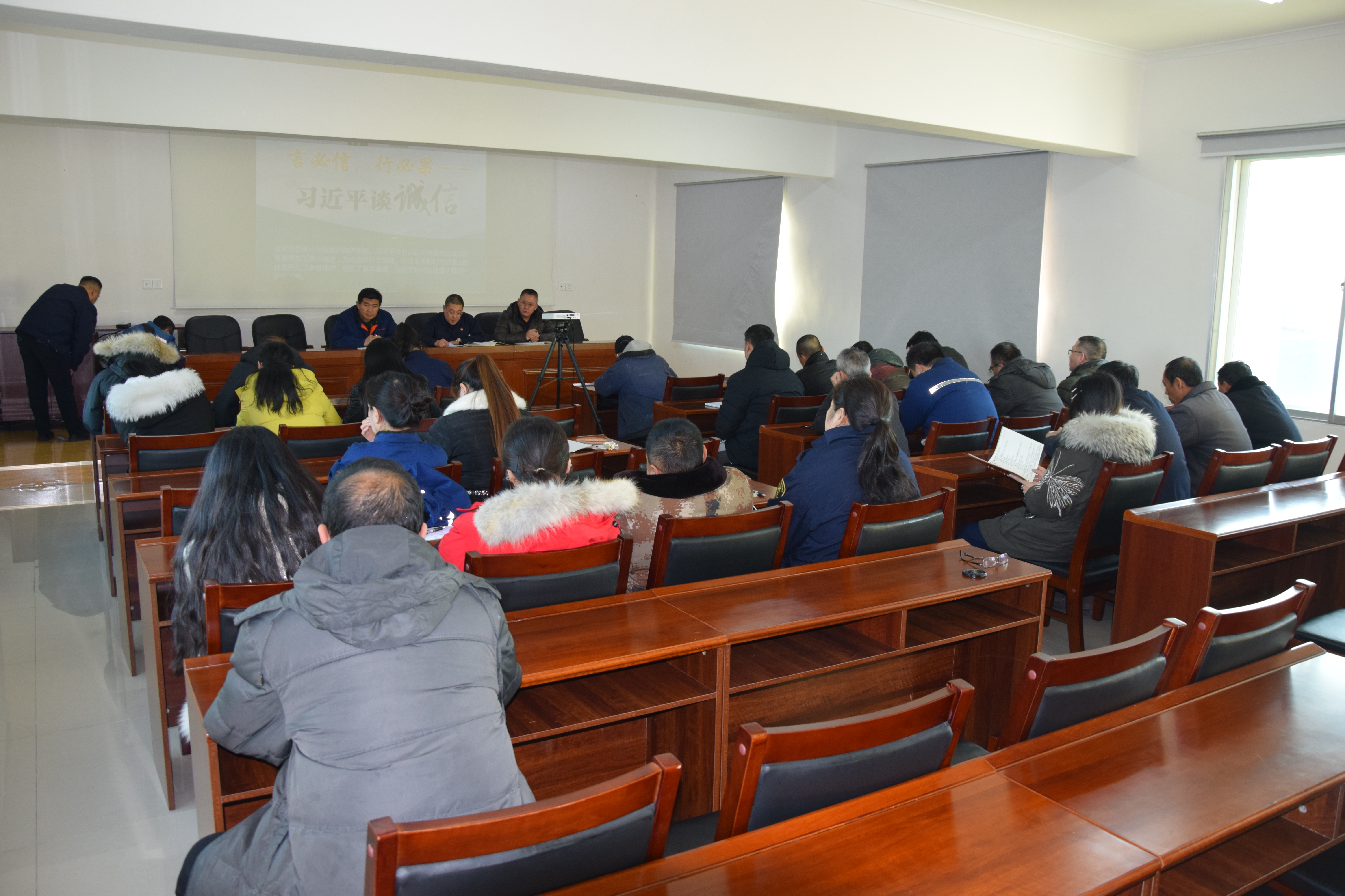 ? ? ? ? ? ?為響應(yīng)國(guó)家“誠(chéng)信建設(shè)萬(wàn)里行”主題活動(dòng)號(hào)召,根據(jù)市國(guó)資委關(guān)于開展誠(chéng)信教育宣傳周活動(dòng)的有關(guān)要求,營(yíng)口儲(chǔ)備糧集團(tuán)有限公司結(jié)合集團(tuán)黨員干部培訓(xùn)教育的工作實(shí)際,于12月15日下午3點(diǎn),在集團(tuán)四樓會(huì)議室舉辦了以“優(yōu)化信用環(huán)境,提高誠(chéng)信意識(shí)”為主題的專題教育培訓(xùn)活動(dòng)。集團(tuán)全體干部職工參加了活動(dòng)。